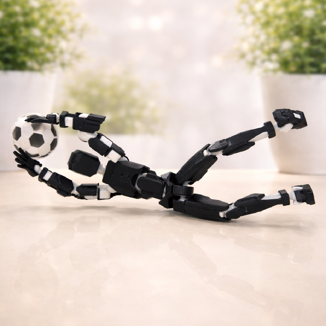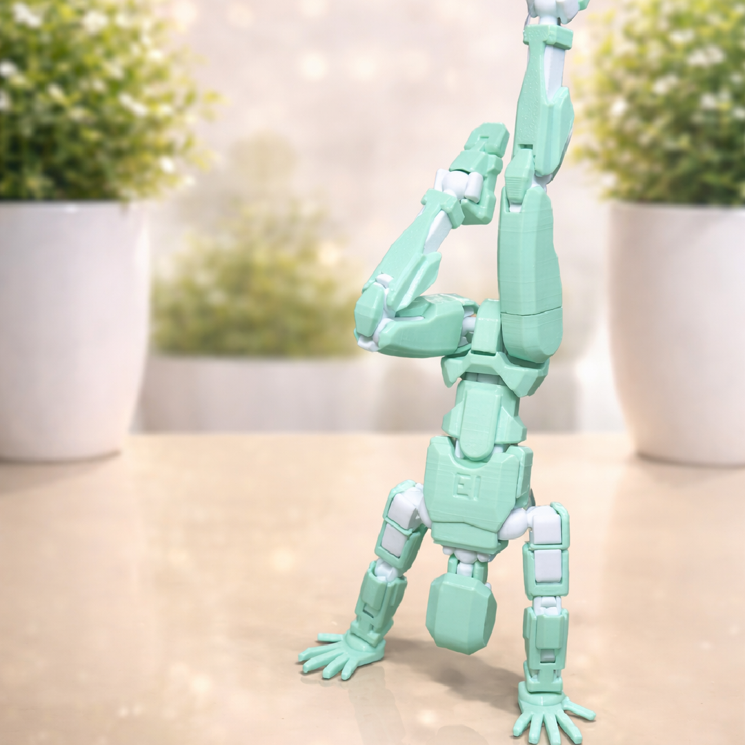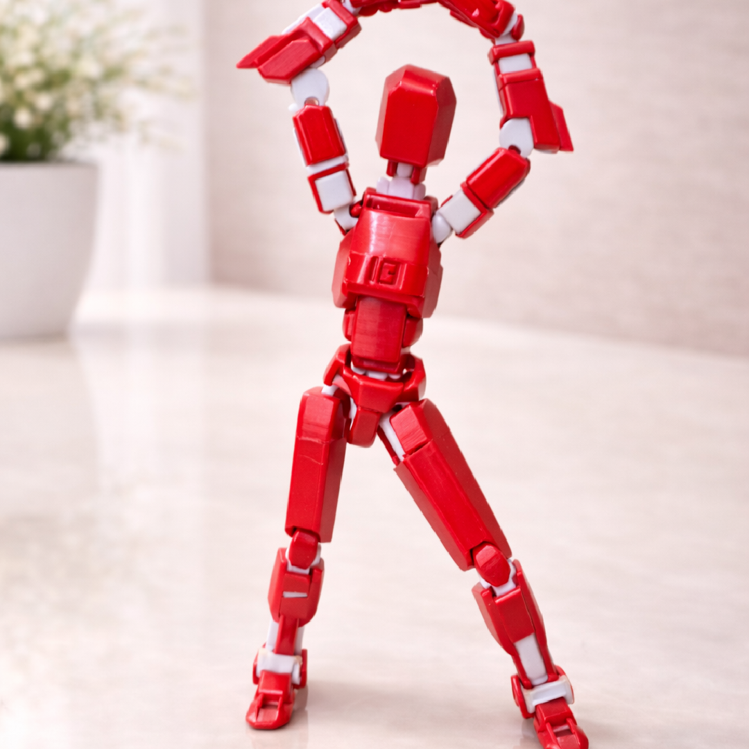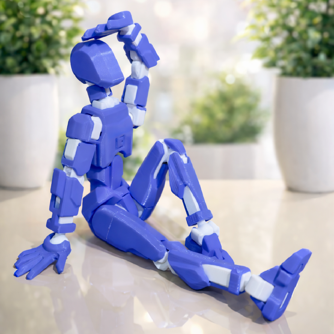 Ao manipular suas articulações, o usuário pode posicionar o boneco em diversas posturas, explorando movimento, coordenação e criatividade.