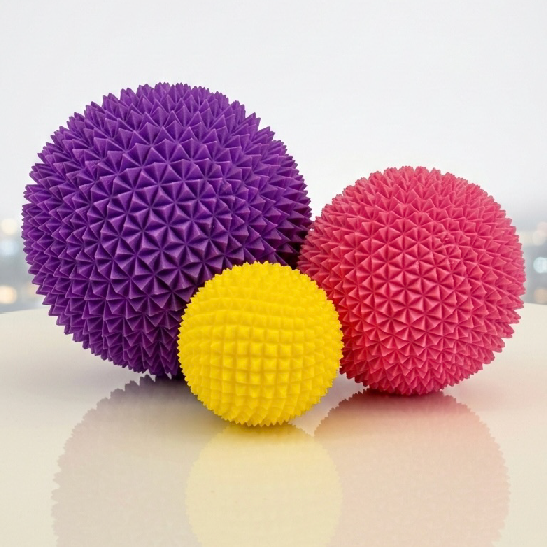 A SensoSpikes é uma esfera sensorial com superfície composta por múltiplas pontas firmes que proporcionam um estímulo tátil intenso e marcante ao toque.